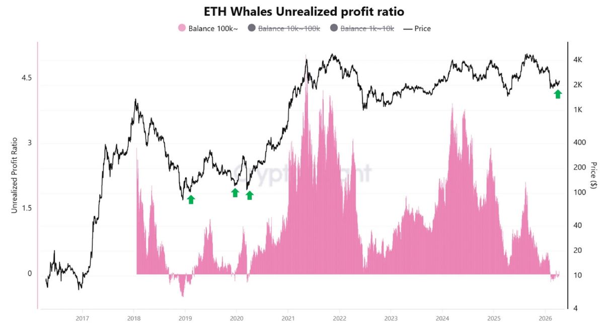 Les détenteurs de portefeuilles crypto contenant au moins 100 000 ETH, soit 236,6 millions de dollars au taux de change actuel, souffert Des pertes latentes ont été enregistrées début 2026. Cependant, en avril, elles sont revenues en territoire positif grâce à une augmentation de 11 % de la valeur de la cryptomonnaie.